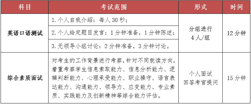 第四,提前面試中著重關(guān)注考生在投資、批判式思維、綜合素質(zhì)等方面的考核,加大面試成績(jī)?cè)谧罱K總成績(jī)中的比重。錄取綜合總成績(jī)中,初試聯(lián)考成績(jī)、提前面試或復(fù)試成績(jī)加權(quán)平均。