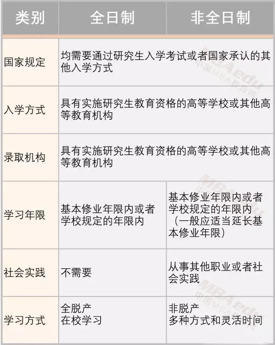 由圖表可以看出,《通知》對(duì)于全日制和非全日制研究生的區(qū)分主要在于是否在職和學(xué)習(xí)方式兩方面,并未涉及學(xué)歷學(xué)位和培養(yǎng)質(zhì)量。今后MBA研究生將只在培養(yǎng)方式上區(qū)分為兩類:全日制MBA和非全日制MBA。