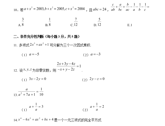 【數(shù)學(xué)】太奇MBA2021年基礎(chǔ)班數(shù)學(xué)周測二