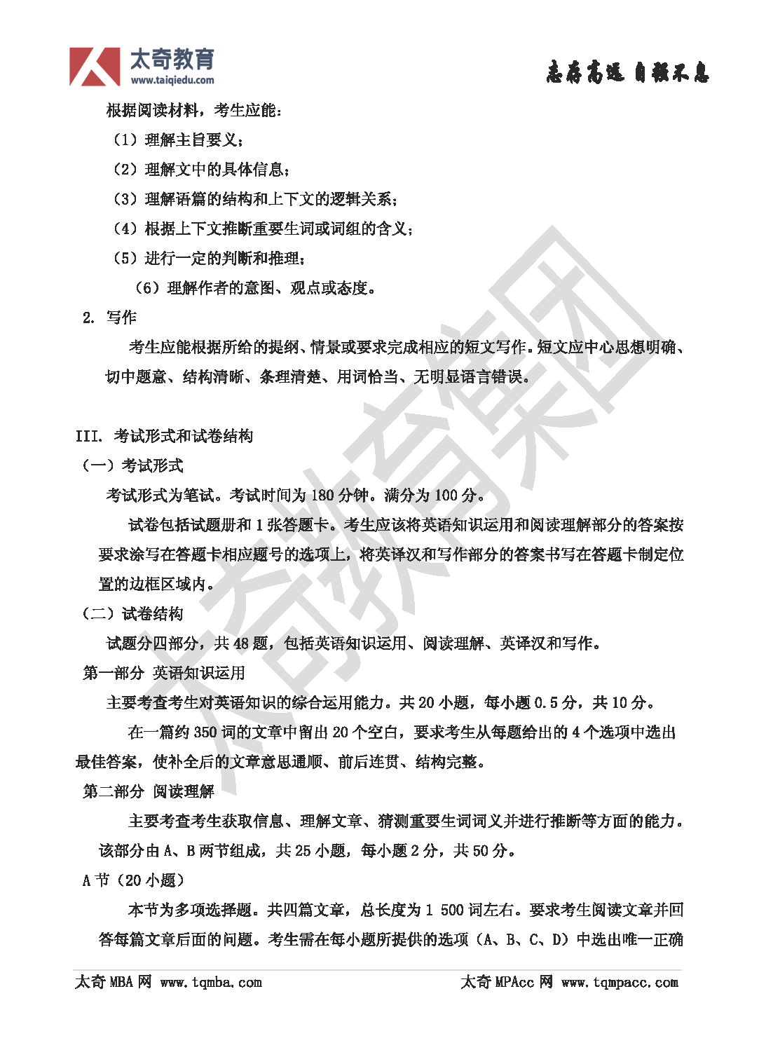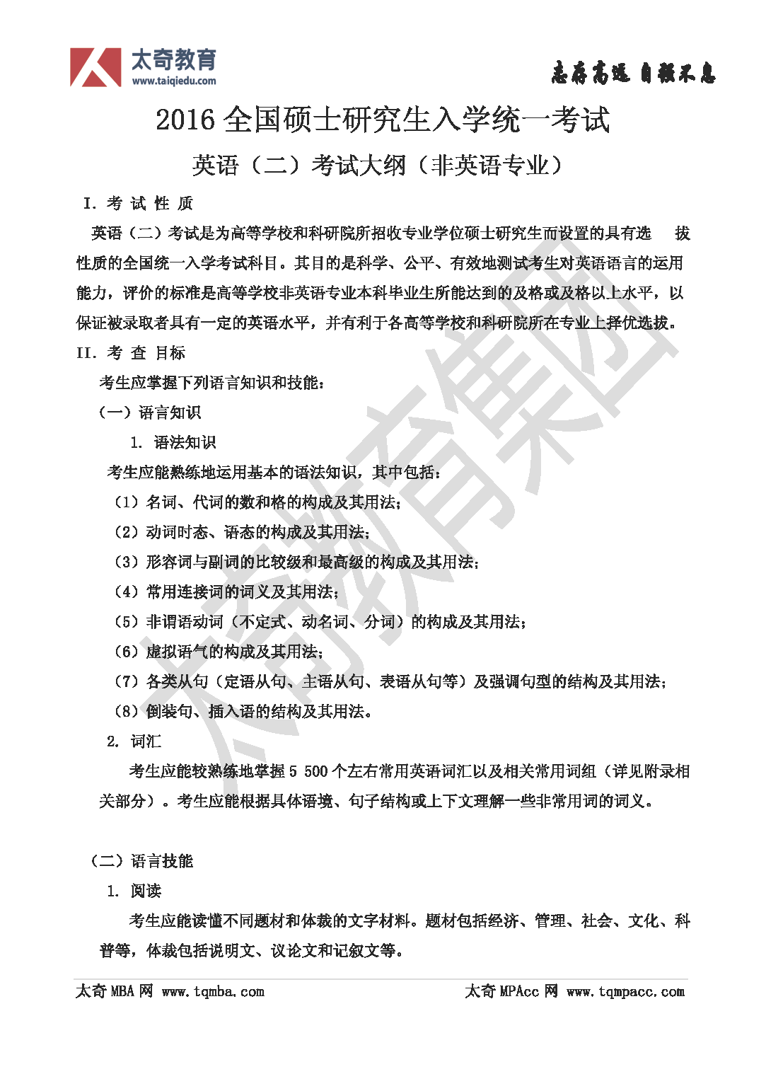 2016管理類(lèi)聯(lián)考英語(yǔ)(二)考試大綱